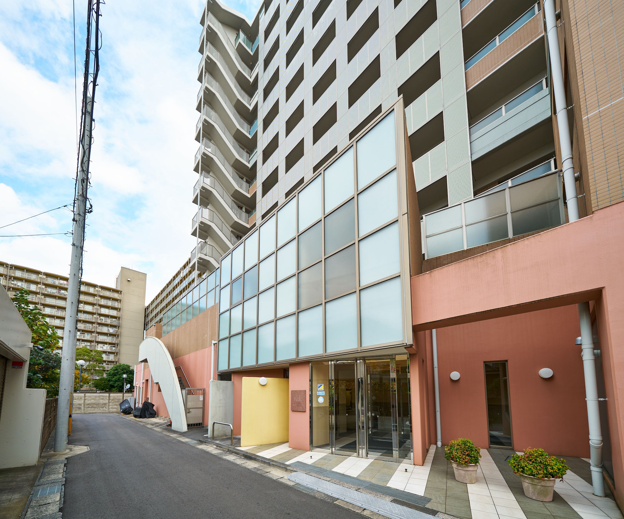 住む人をくつろぎのステージへと誘うエントランス。その導入部はRの壁が施され、視線を受け止めるアイストップの役割とエントランスとしてのサインの働きを担っています。床材や植栽を斜め方向に配することでパースペクティブ効果を強調し、視覚的な奥行き、ひろがり感を増幅。さまざまな仕上げ素材の採用やバリエーションに富んだ造形でバランスよく構成することにより、単調な印象を与えることがないように意識したデザインとなっています。