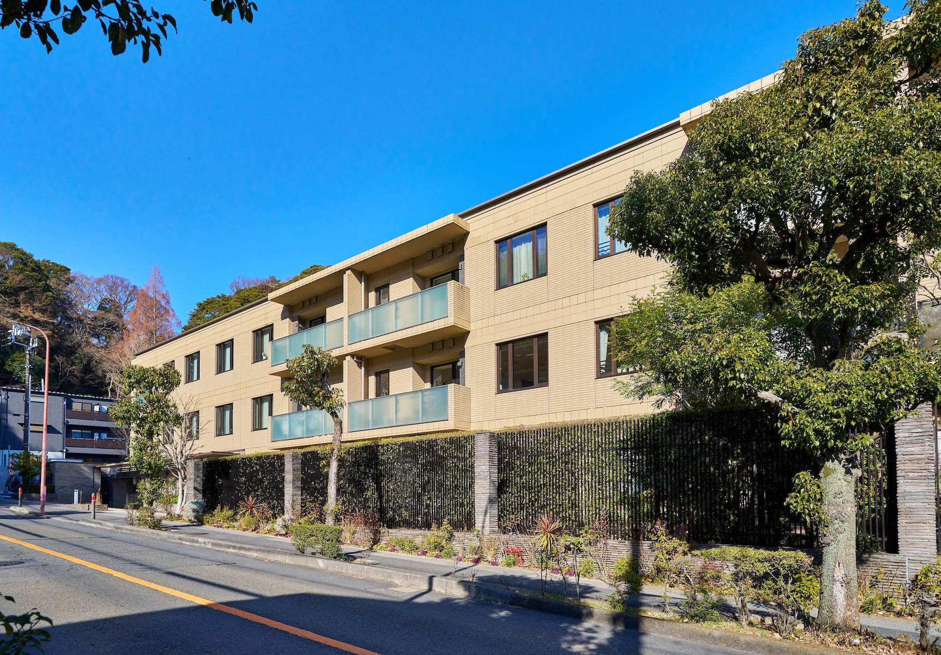 古都・鎌倉。此処には遠い時代の面影が今も色濃く残されています。山の景色、町の風情、凛とした趣。「パークコート鎌倉」のすべては、そこから導かれました。低層の落ち着きあるフォルムに、豊かな緑が映えるベージュ基調の気品あるカラーリング、歴史の層を思わせる鉄平石の小端積の壁。鎌倉に在るべき佇まいを求めた建築は、歴史を重ねたこの場所に、ひとつひとつ新たに時を紡ぐように築かれています。