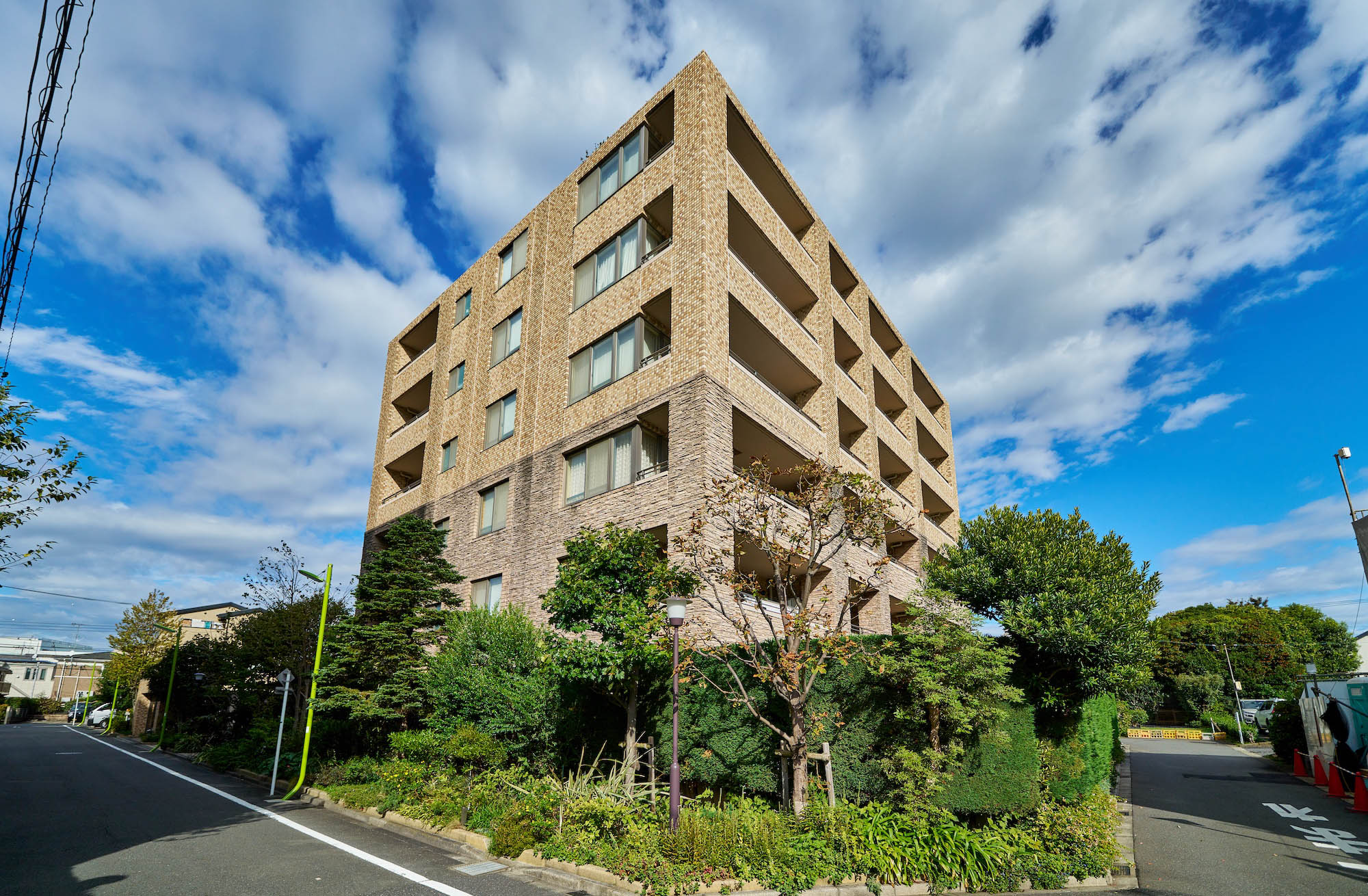 道路を挟んで、イースト棟とウエスト棟の2棟が寄り添うように配置されている「パークコート砧」。ブリティッシュ・トラッドをモチーフにした上質な邸宅は、美しいパブリックな庭を特徴とし、一戸建てとマンションならではの住み心地を併せ持っています。両棟が面する道路側にはそれぞれ、パーゴラのあるエントランスガーデンと、互屋根のエントランスポーチが設けられています。プライバシーを守りながら、外とつながったイメージをつくりだす剣先フェンスを隠すような生け垣は緑の道となり、設置されたベンチはこの道路のアクセントに。溢れる植栽が四季を通じて、街並みに柔らかな雰囲気を漂わせています。豊かな自然環境の中の邸宅地と調和しながら、確かな存在感を感じさせる、知的な佇まいです。
