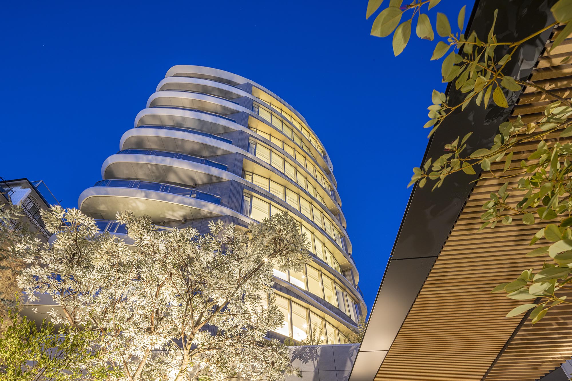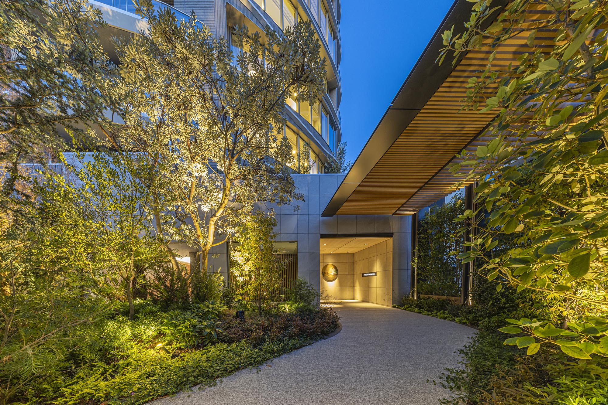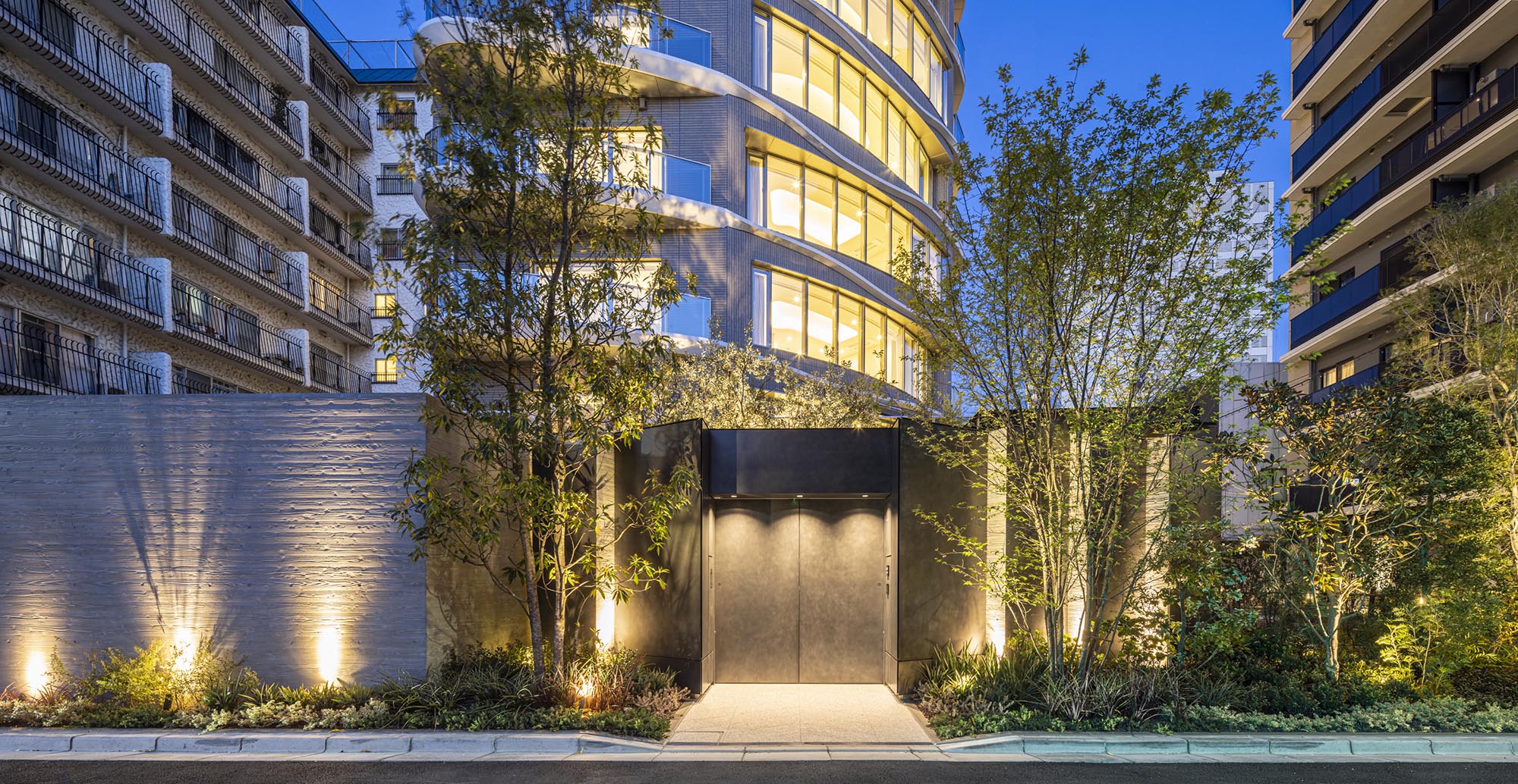 どこにもない姿で、しかも奇を衒わずに——外観には、そんな青山らしい感性が取り入れられています。曲線を活かしたファサードは、互い違いに配された、「表参道と外苑の交差」を表現するフィンとサッシが有機的なフォルムを描き、陰影を創出。先進的なデザインでありながら、マテリアルは風合いある石器質タイルが格調を醸し出し、そのコントラストが、この場所らしい佇まいを魅せています。自然の生命力を感じさせ、存在感を放つ外観デザインです。
