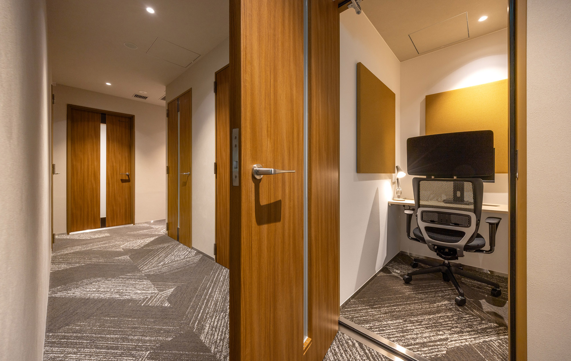 全5室用意した個室ワークルーム。デスクやモニター、コピー機を設置。何にも邪魔されずに仕事や勉強に集中でき、周りを気にすることなくリモート会議もできます。