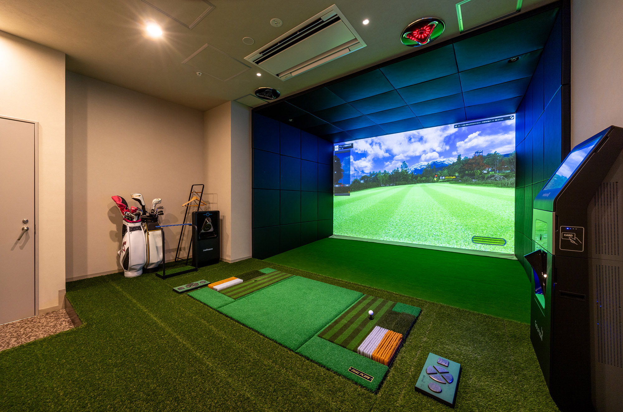 シミュレーションゴルフの機器を設置し、気軽にプレイを楽しめます。