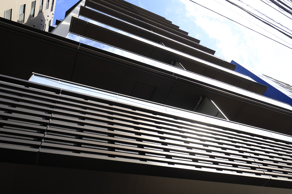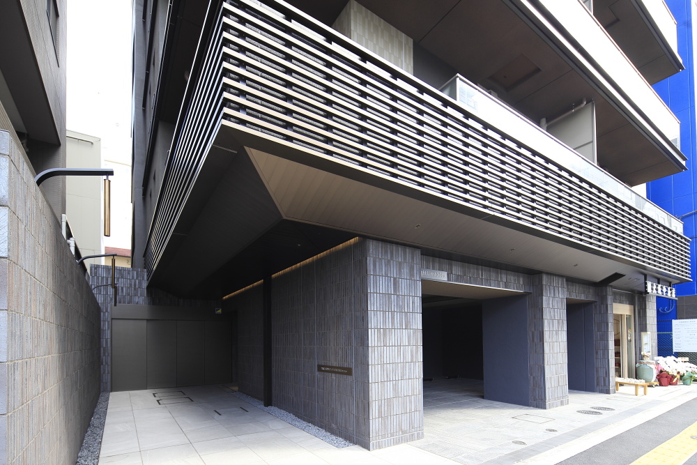 最上階に曲線を描く水平フィンをあしらい、基壇部にはルーバーを配することで、文京区アドレスに相応しい美しさとしなやかさを纏った外観デザイン。ブラウンを基調としながら、アルミルーバーや大判タイル、砕石など個性の異なる素材を調和させることで、印象的な表情を演出。長く住まうほどに愛着が感じられるレジデンスを追求し、マテリアル一つひとつの色味や質感にこだわっています。時を蓄積してきた高台の一角で、経年とともに成熟していく邸宅美が感じられる佇まいです。
