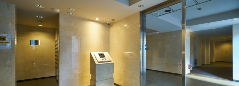 存在感のある4本の列柱が、住まう方や訪れる方を誇り高くお出迎え。丘に建つ構造上からメインエントランスは建物全体の5階部分に設けられており、緩やかな階段を下りた先にあります。そこは、外からの視線が届かない、静謐なプライベート空間。シックな木目調の扉の先にも、上質な素材に包まれた気品漂う空間が続いています。内廊下設計ながら、光と風が通り抜ける吹き抜けが配され、さらに、1階には使い勝手の良い動線を確保したサブエントランスを設けるなど、日々の快適性にも配慮した空間設計です。