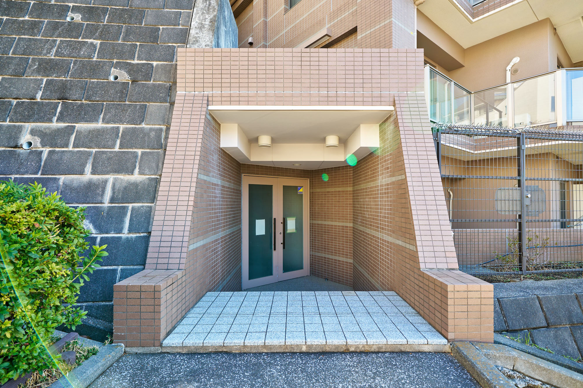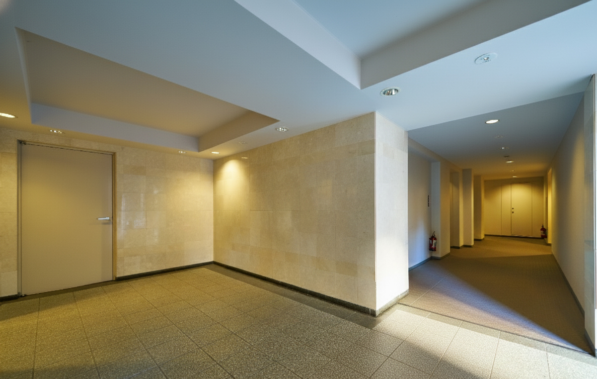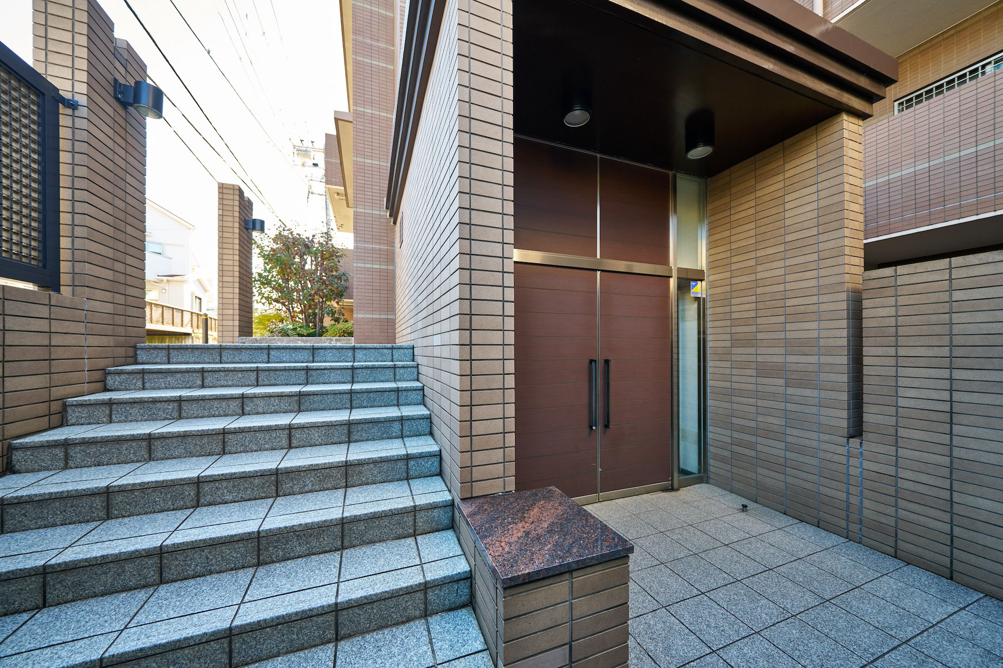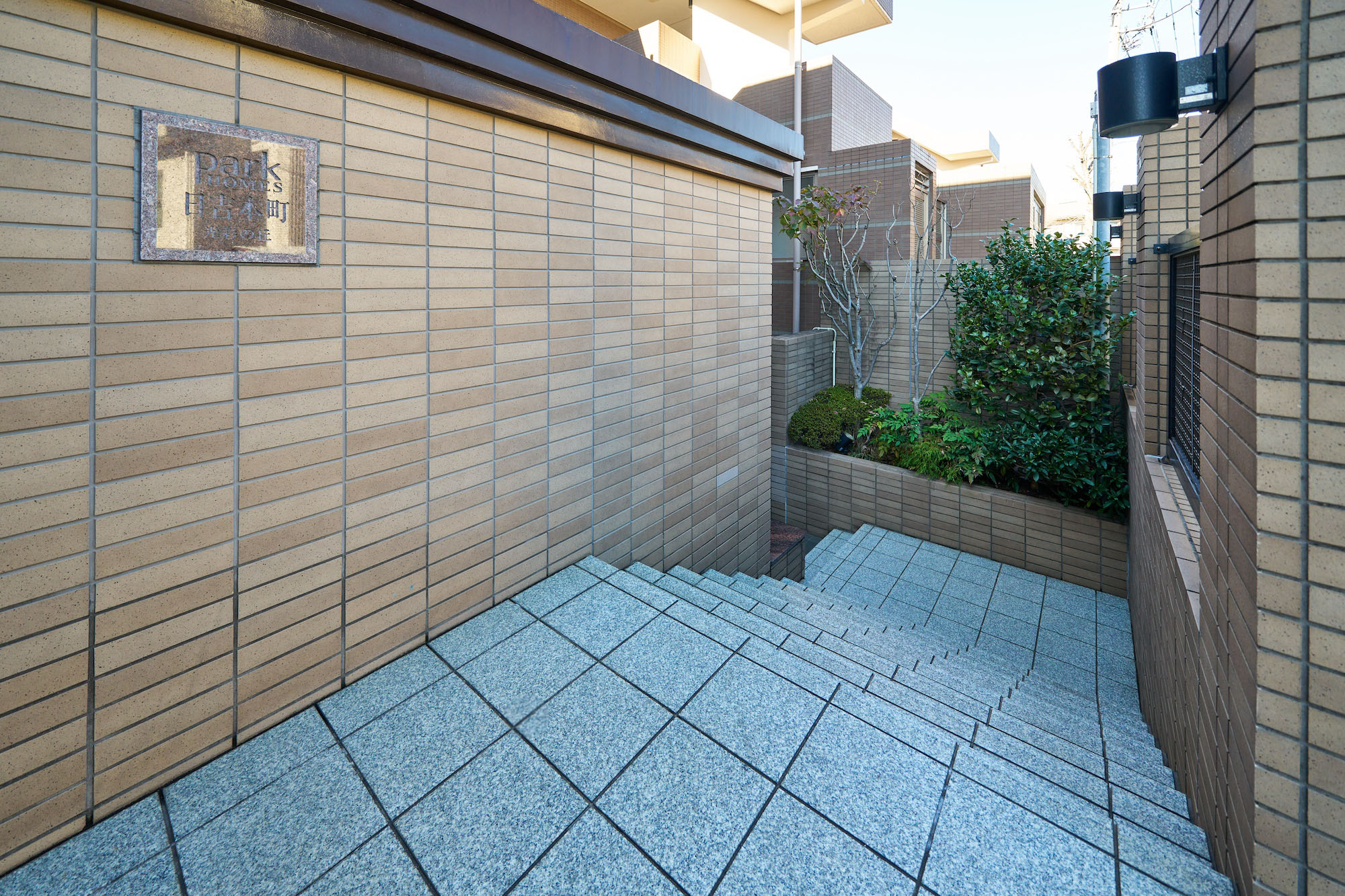 存在感のある4本の列柱が、住まう方や訪れる方を誇り高くお出迎え。丘に建つ構造上から、メインエントランスは建物全体の5階部分に設けられており、緩やかな階段を下りた先にあります。そこは、外からの視線が届かない、静謐なプライベート空間。シックな木目調の扉の先にも、上質な素材に包まれた気品漂う空間が続いています。内廊下設計ながら、光と風が通り抜ける吹き抜けが配され、さらに、1階には使い勝手の良い動線を確保したサブエントランスを設けるなど、日々の快適性にも配慮した空間設計です。