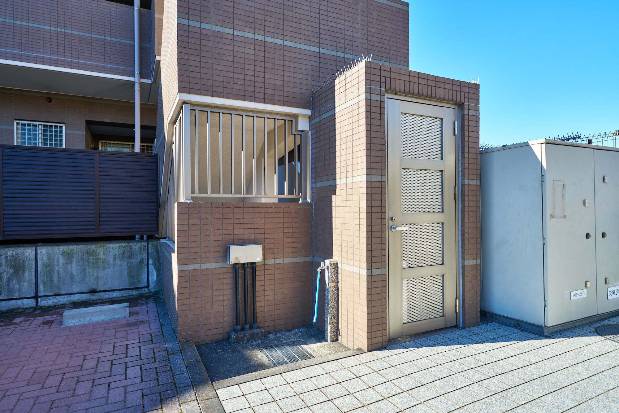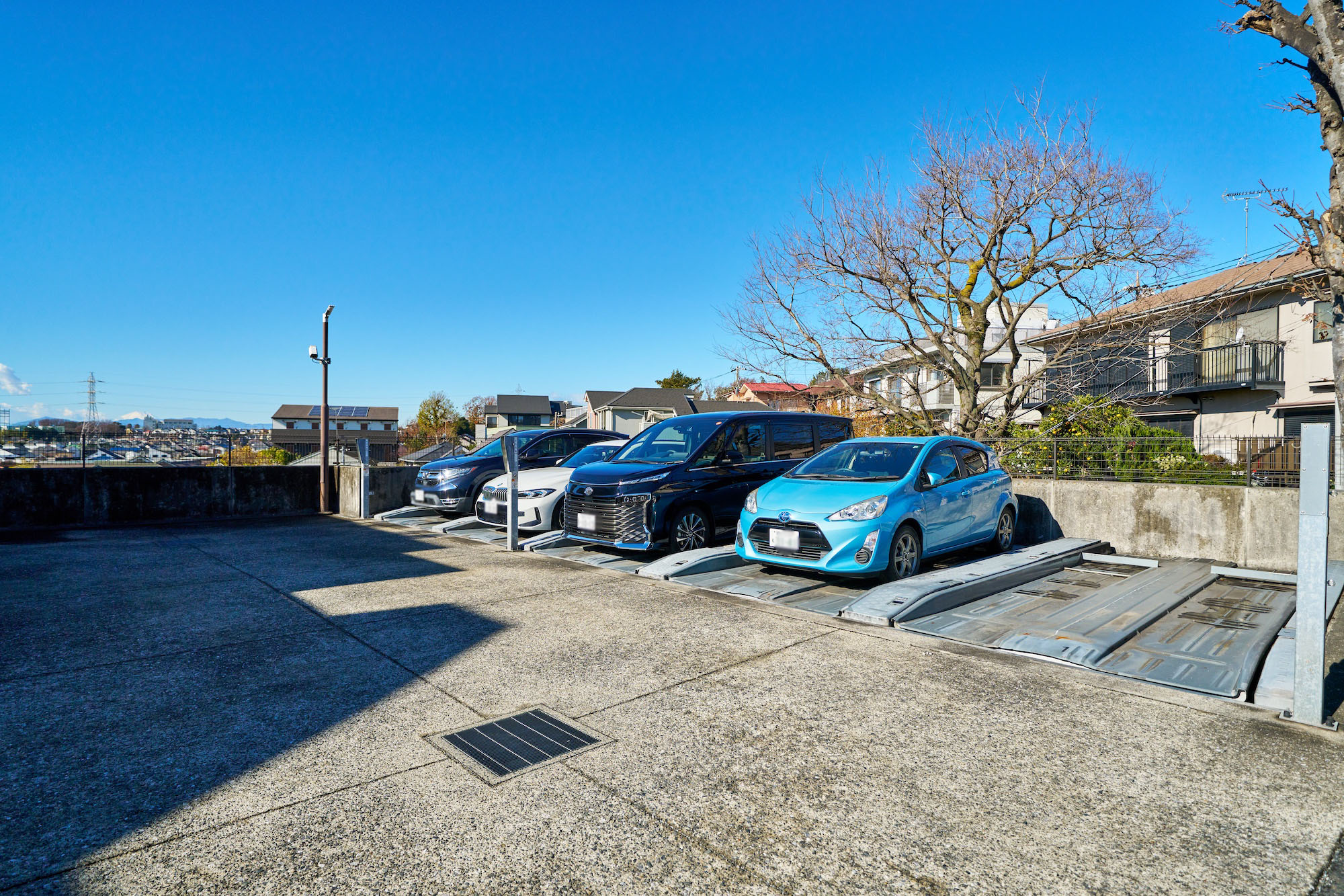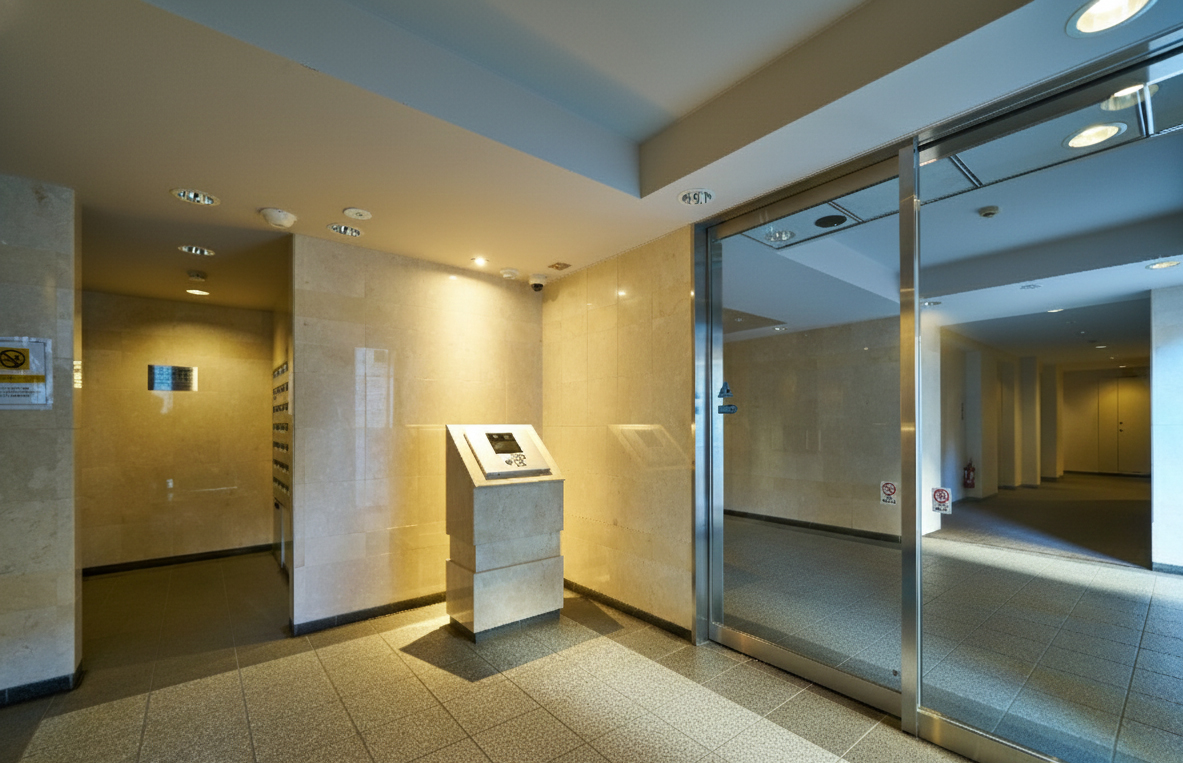 存在感のある4本の列柱が、住まう方や訪れる方を誇り高くお出迎え。丘に建つ構造上から、メインエントランスは建物全体の5階部分に設けられており、緩やかな階段を下りた先にあります。そこは、外からの視線が届かない、静謐なプライベート空間。シックな木目調の扉の先にも、上質な素材に包まれた気品漂う空間が続いています。内廊下設計ながら、光と風が通り抜ける吹き抜けが配され、さらに、1階には使い勝手の良い動線を確保したサブエントランスを設けるなど、日々の快適性にも配慮した空間設計です。