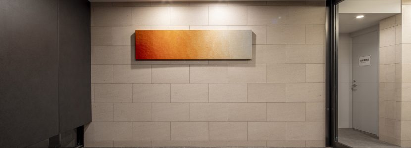 植栽の緑と一体となる心地よい空間のエントランスホールには、綴織の技術を活かしたアートを採用。最上級の帯に使われる「引箔」の技術を用いたアートパネルや、繊細な織の表現によるファブリックアートパネルが自然豊かな日常にさらなる潤いを添えています。共用スペース