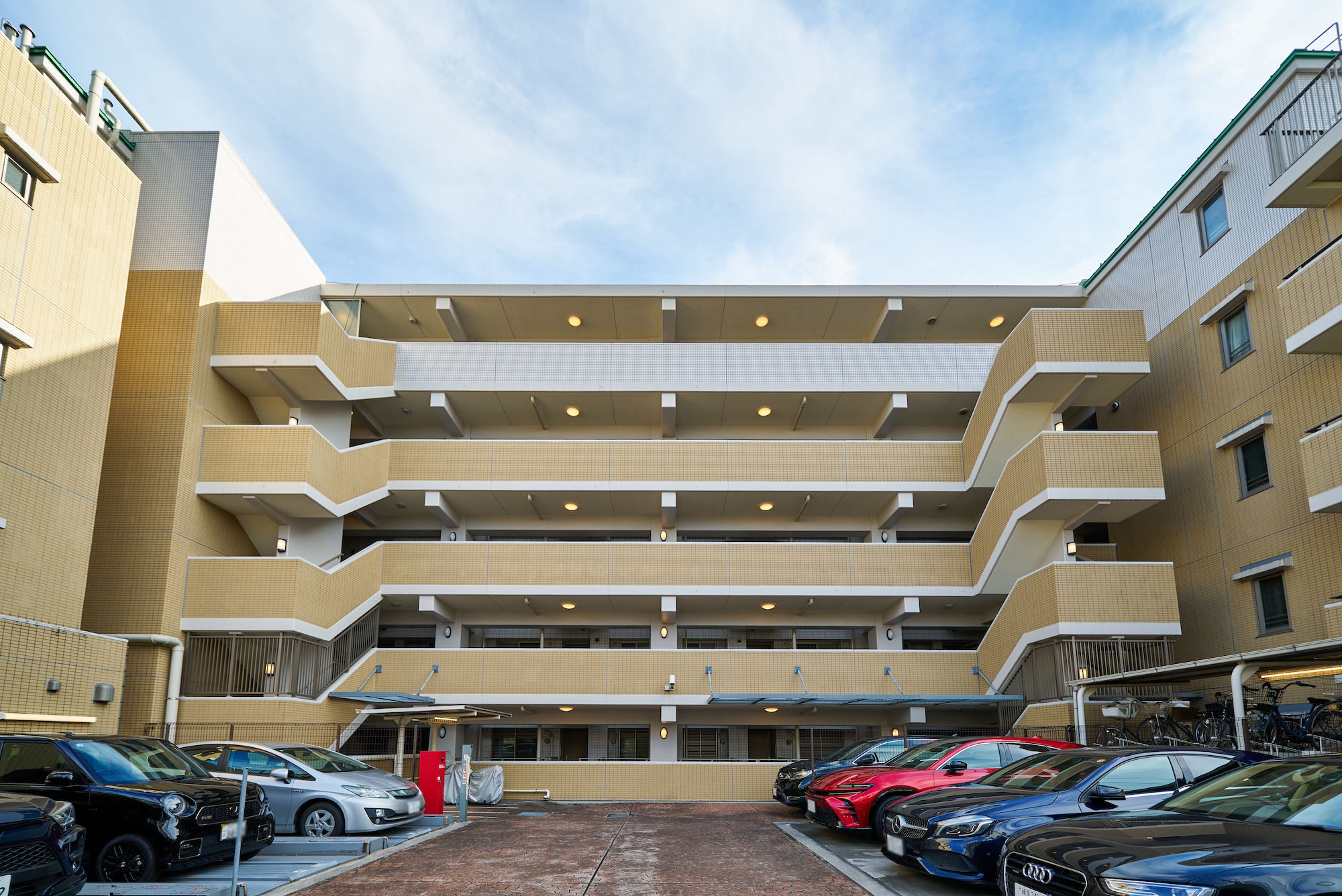 お客様を迎え入れるようなコの字型のフォルムが特徴的な外観。柔らかさや優しさを感じさせる暖色系のタイルを中心としたファサードには、潤い豊かな植栽が調和。ここに住まうことが誇らしくなるような、洗練された外観デザインです。エントランス回りには、季節に応じたマンションの顔を演出するネイチャーウォール(壁面緑化)を設置。住まいに心地よい癒しを醸成し、彩りのある都市型マンションがデザインされています。
