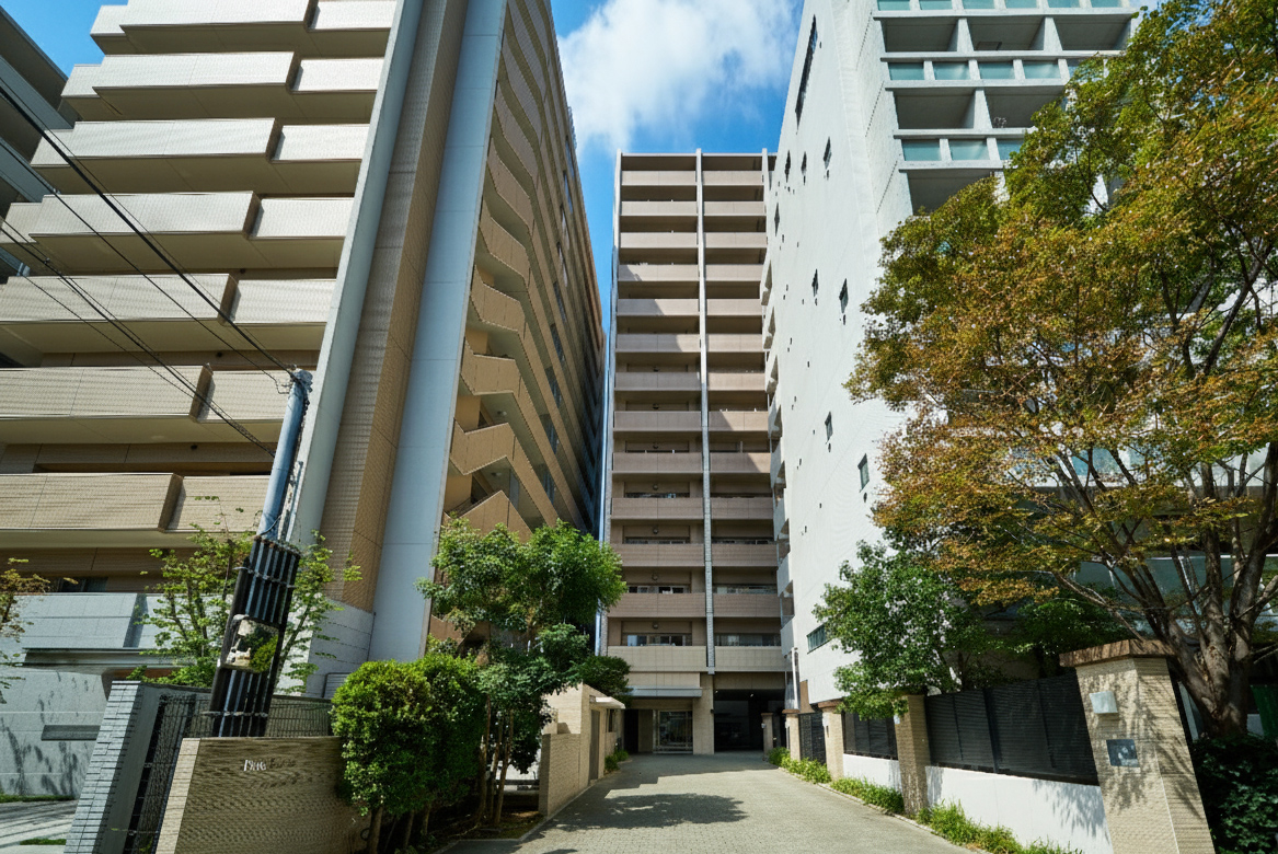 多くの人々の目に触れる機会の多い駅前立地だからこそ、外観デザインにも、街の景観をリードするような格調の高さを追求した「パークホームズ本八幡駅前」。直線のみで構成されたシンプルなファザードは、さまざまな形が氾濫する都市にあって、むしろ建物の美しさを際立たせています。淡いブラウン系をベースに白の縦ラインを配した正面、ブラウン系の側面と、カラーリングも落ち着いた雰囲気。各住戸に込められたやすらぎの深さを象徴するかのような佇まいです。