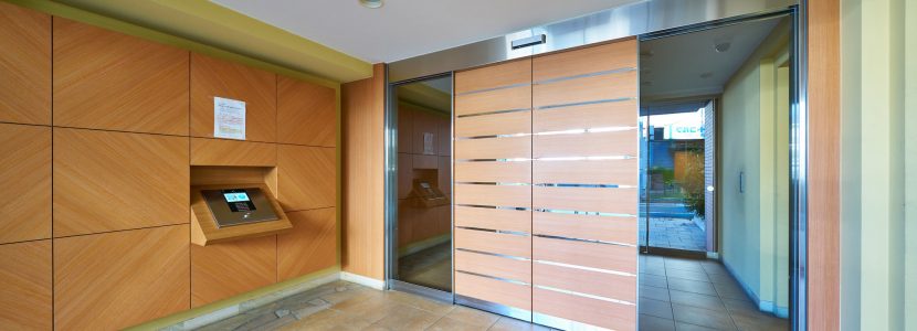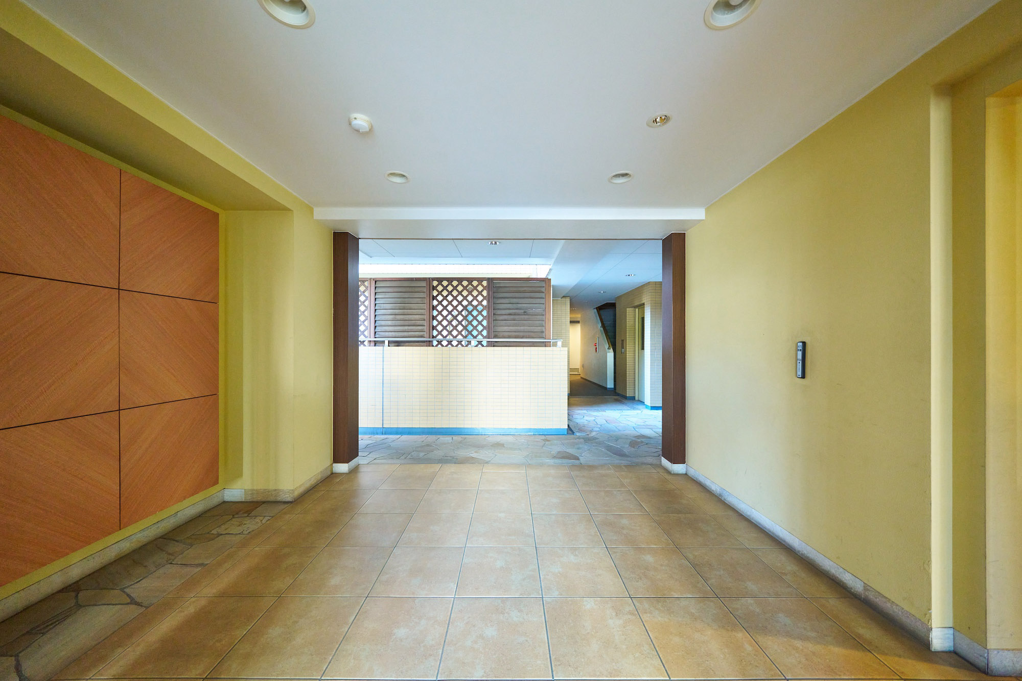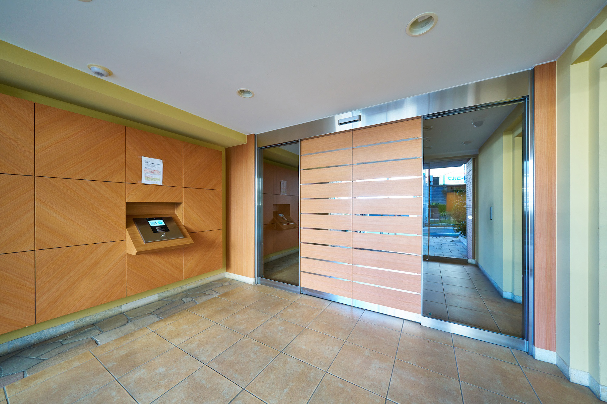 シャープな直線で構成されたファサードや張り出したキャノピーが、住まいの洗練さとグレード感を印象づけるエントランス。一歩入ると、木調の扉や間接照明、自然石などをあしらったエントランスホールが、暖かな表情で訪れる人を優しく包み込んでくれます。また、総戸数41戸に対して3基のエレベーターを完備。2階より上階は開放廊下が少なく、各住戸へのアクセスも2住戸単位(一部住戸を除く)を基本としており、プライバシーやセキュリティ性が高められています。