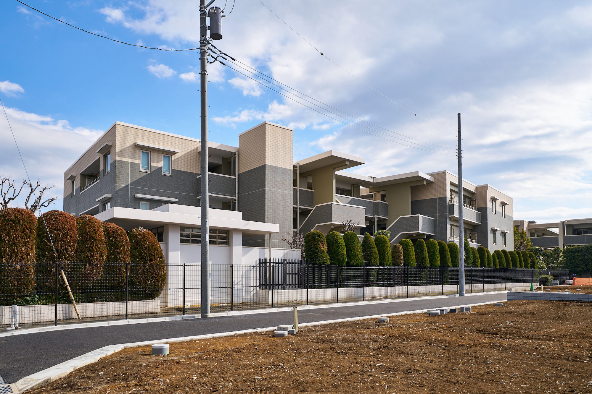 風情豊かな周辺環境との調和と、街に静かな潤いをもたらしている緑との連続性を活かした低層3階建てのフォルム。1・2階にはオリーブグリーン、3階にはスカイラインを意識したホワイトをまとい、シンプルなタイル貼りのデザインを創出。時の流れに身を任せるような、もの静かな表情の中にも、はつらつと輝くような軽やかさ、そして凛とした確かな存在感を見せながら、周囲の景観に美しく溶け込んでいます。