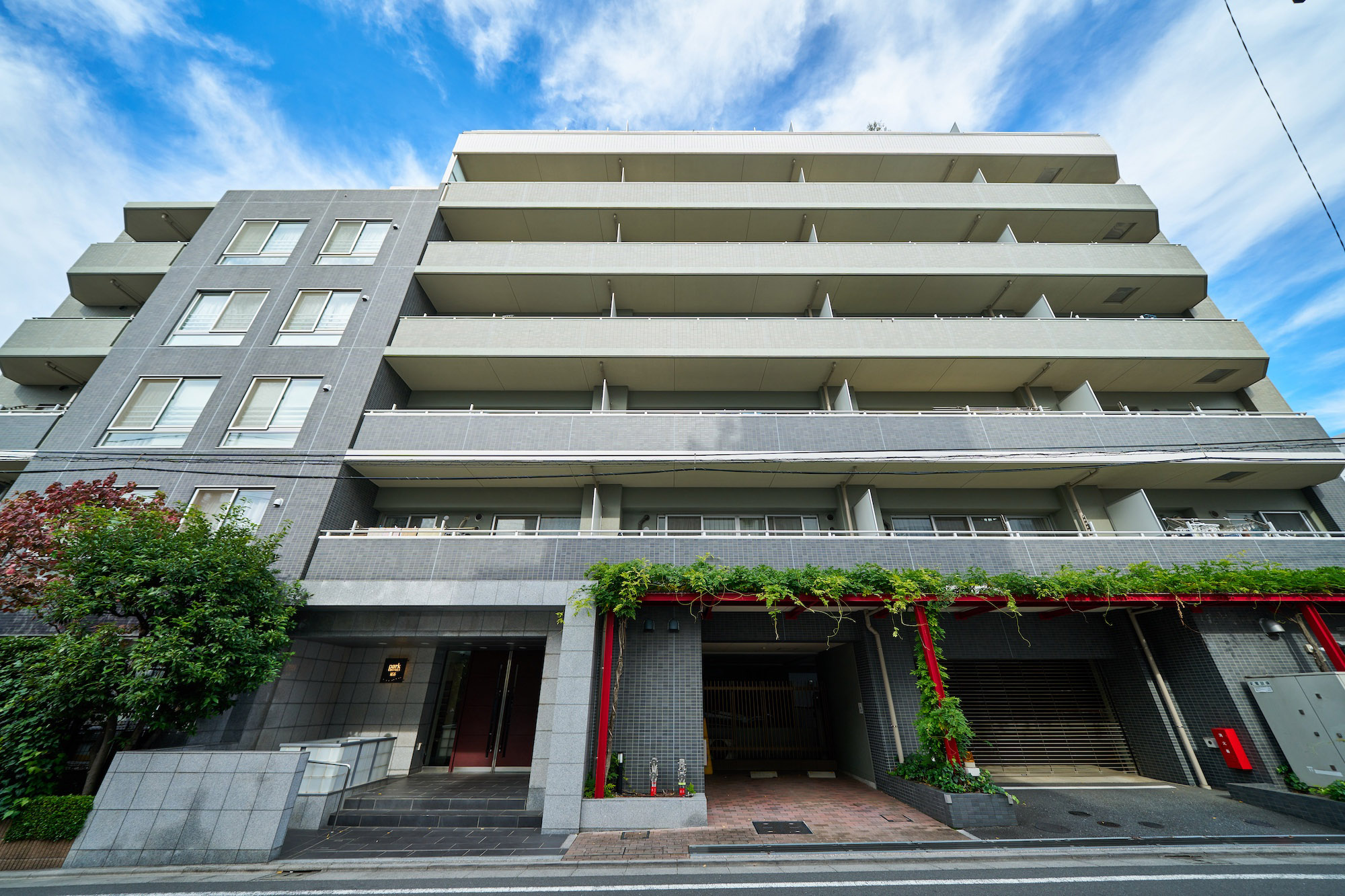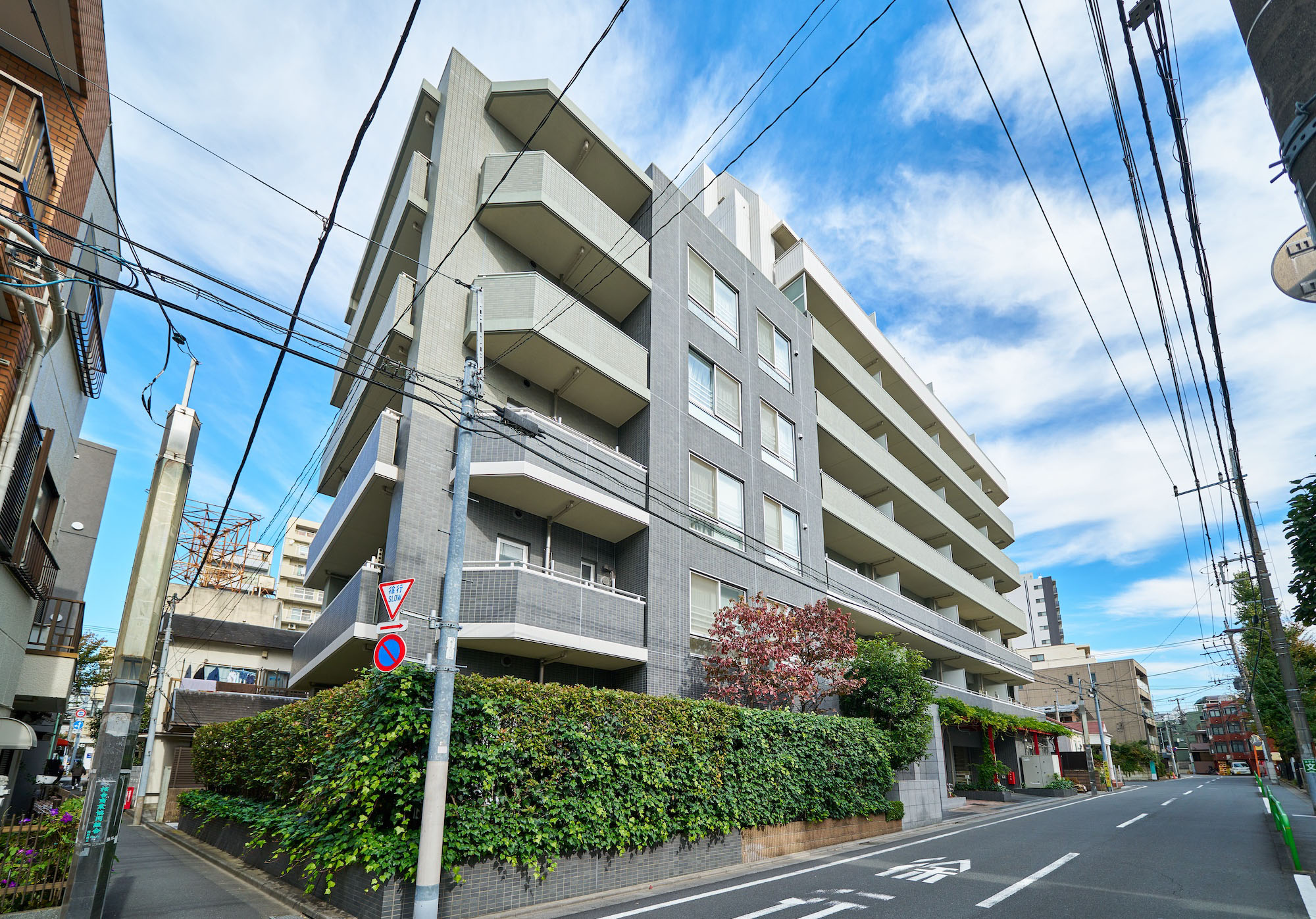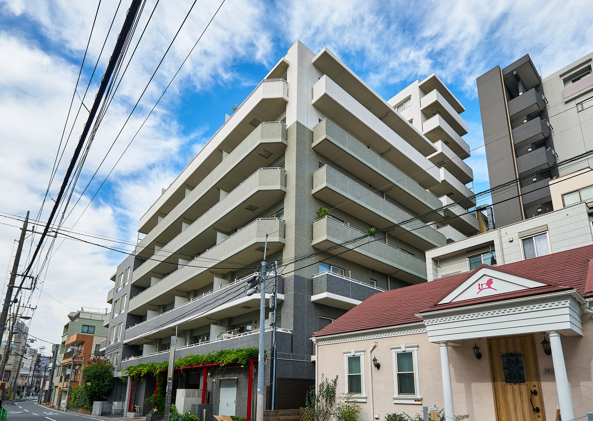 現地より徒歩1分と身近に望む、千川どおりの桜並木。「パークホームズ桜台」では、街の象徴にもなっているこの桜をメインモチーフに外観がデザインされています。外壁は桜を象徴する3色で構成し、上層階には清らかな「桜の花」を、中層階には清潔感のある「葉」を、低層階には重厚感のある「幹」を表現。それぞれにホワイト、グリーン、ダークグレーの磁器質タイルを採用し、空に向かうのびやかな印象と、住宅地としての風格を同時に創出。この地ならではの住まいの美質を、細部にわたって追求しています。
