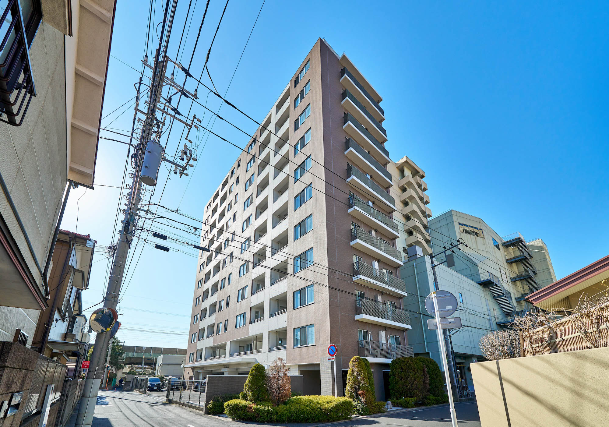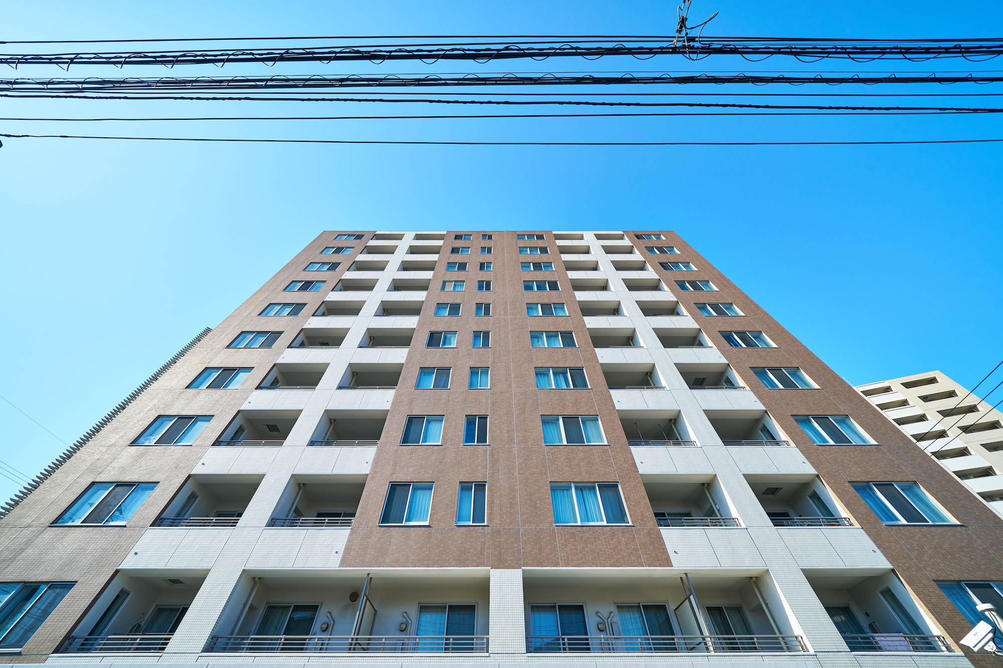 縦ラインを強調し、「凛」とした表情の外観デザイン。建物のカラーリングは、気品あるオフホワイトとシックなダークブラウンを採用。優美さと落ち着きが共存する意匠、そしてランドマーク性に富んだ存在感。行き交う人々を惹きつけ、住まう方々の誇りとなるような、美しい佇まいです。