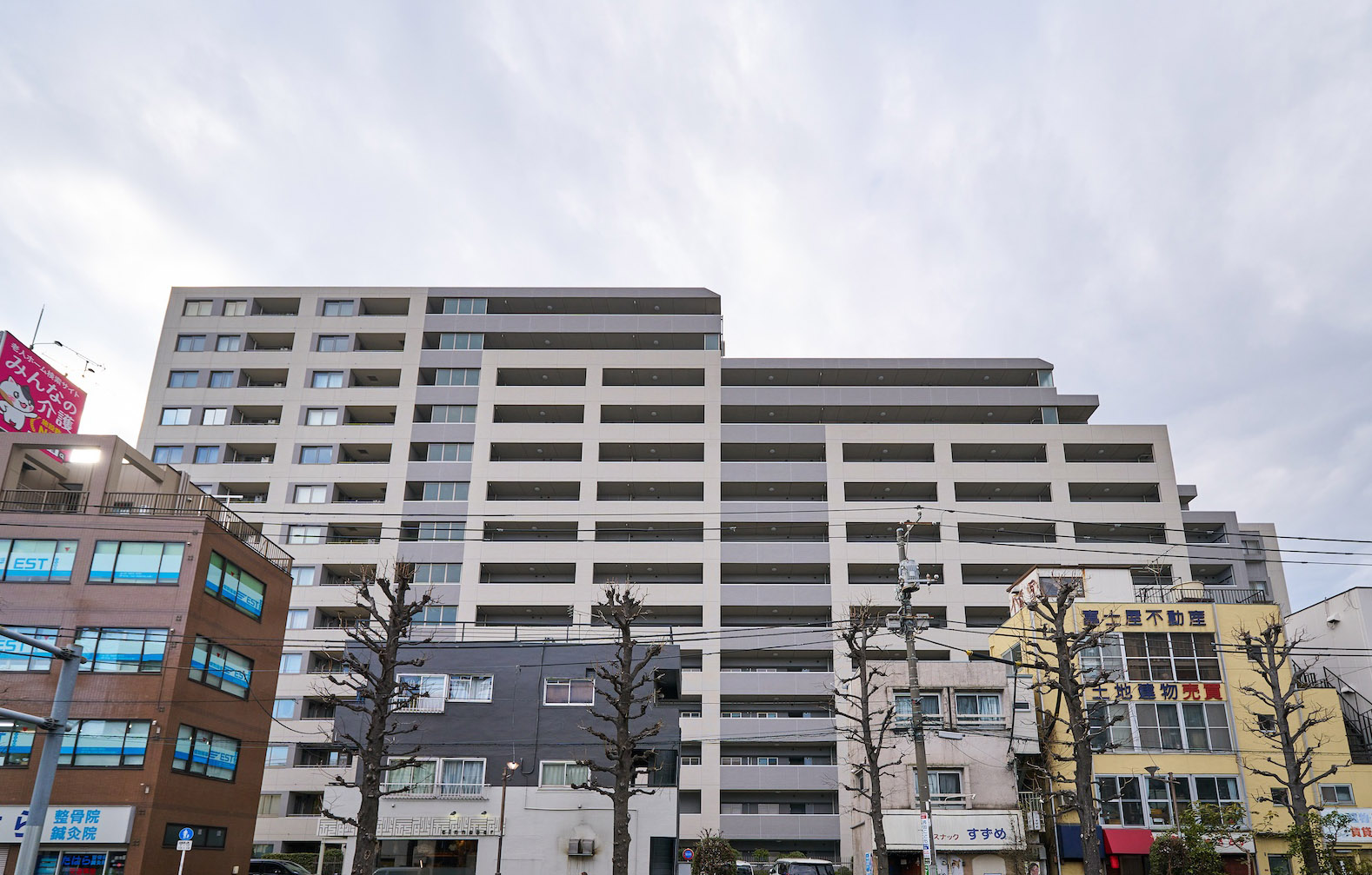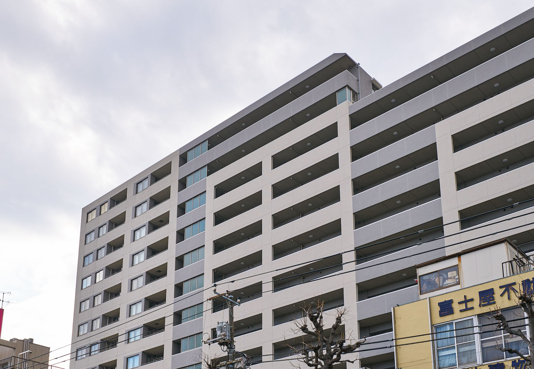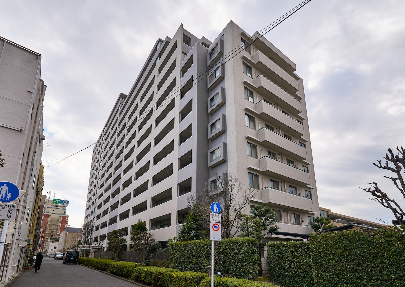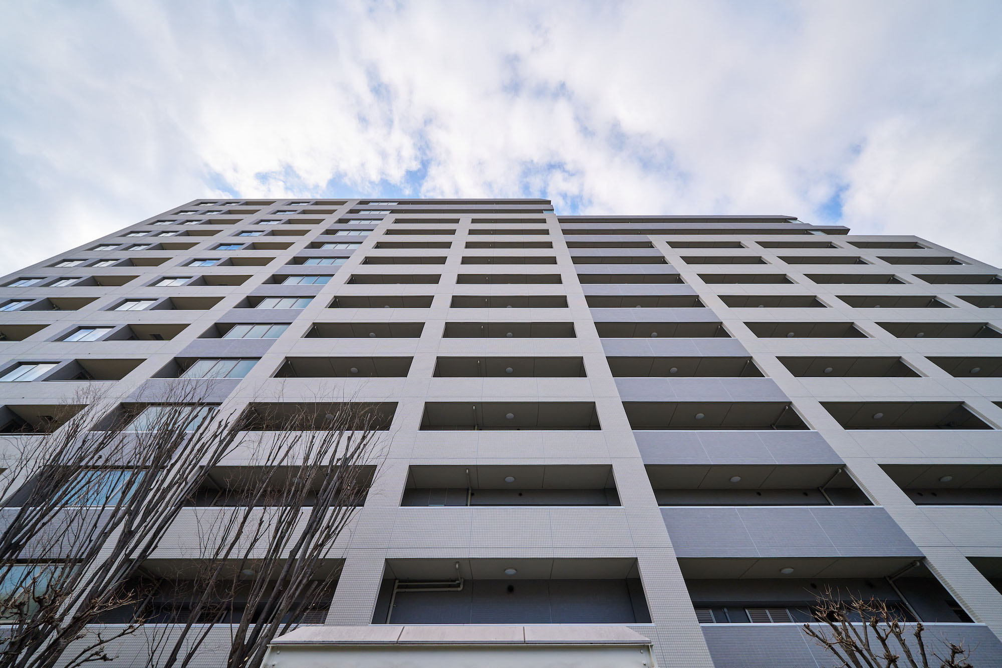 新宿を望む敷地東側<Urban Edge>と、緑豊かな敷地西側<Nature Edge>という立地は、まさに都市と武蔵野の交差点。「パークホームズ高井戸グランファステール」は、この地の持つ魅力を活かし、高層棟と低層棟という対照的なフォルムの2棟によって構成されています。ホワイト基調とグレイの質感のあるタイルでおおわれた住棟デザイン。柱と梁によるグリッド構成と外壁タイルの貼分けにより、建物に陰影が生まれ、ビッグスケールの中にもリズム感を演出した表情豊かなファサードを描いています。自然との親密性を感じさせる<Nature Edge>というポジションに位置する「サウス&ガーデンレジデンス」は中庭の豊かな植栽や憩いの空間とのハーモニーを奏でるブラウンのやわらかなイメージ。重厚な低層3階建のフォルムとあいまって、上品さと質感豊かな雰囲気を美しく醸し出しています。高層と低層の対比、青空と木々の緑のコントラストによって、Simple & Modernなテイストを持ったデザインです。