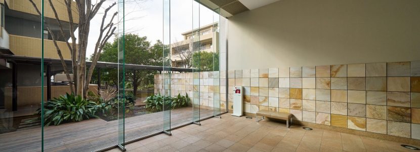 緑の遊歩道「ウェルカム・アベニュー」の先には、パーゴラと気品のある石調タイルが象徴的なメインエントランス。さらに一歩足を踏み入れれば、約4.6mの2層吹抜けによって圧倒的な開放感に満ちたエントランスホールが広がります。正面には全面ガラスを通して中庭「フォーシーズンズ・パティオ」が望めるこの場所は、UrbanとNatureとをつなぐ洗練されたクロスオーバー・ゾーン。訪れる人に理知的なもてなし感を感じさせる迎賓空間です。「スカイフロンテージ」の屋上には「スカイビュー・テラス」が設けられており、東に新宿のビル群、西に富士山というふたつの異なる眺望が楽しめます。