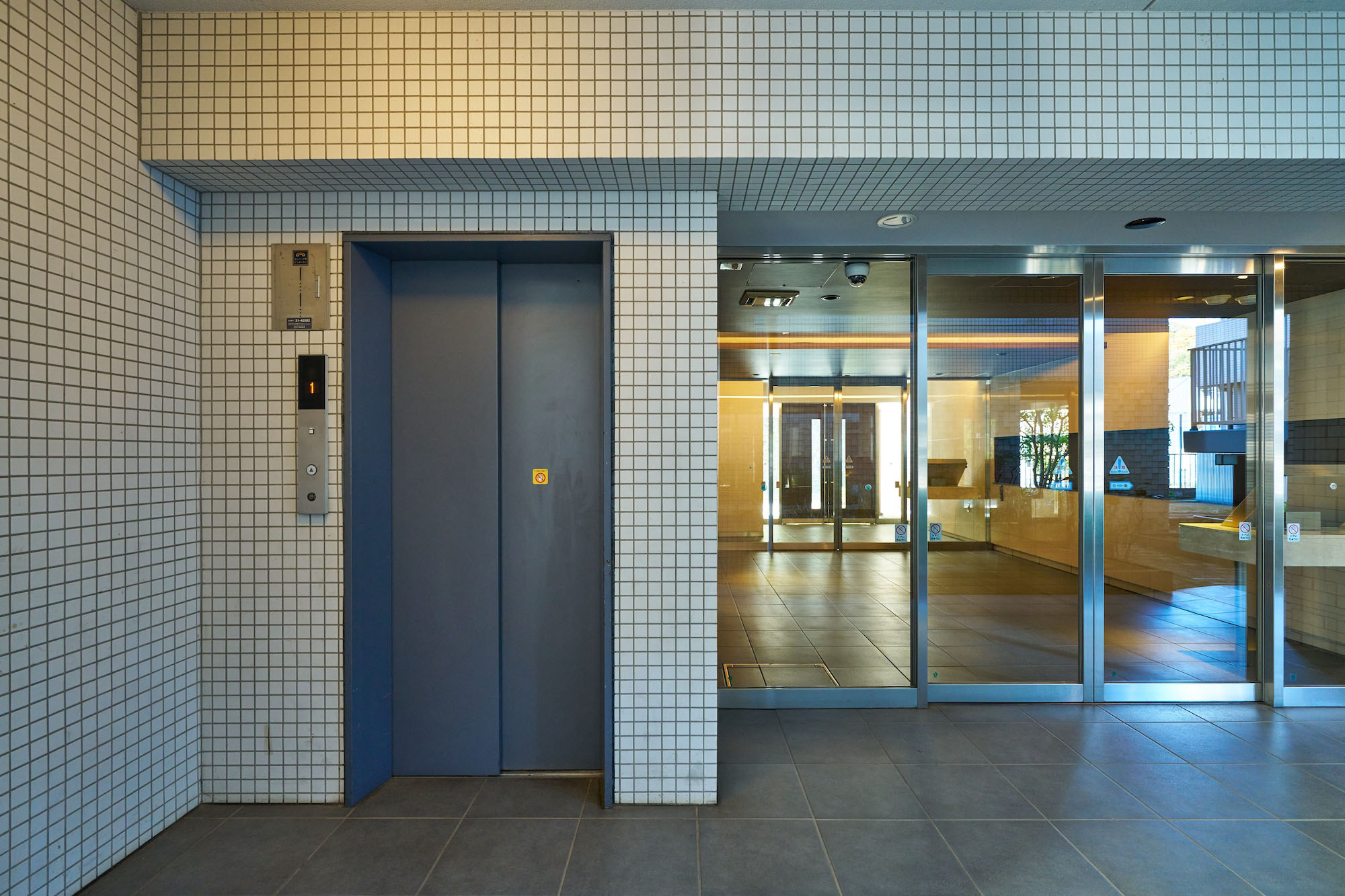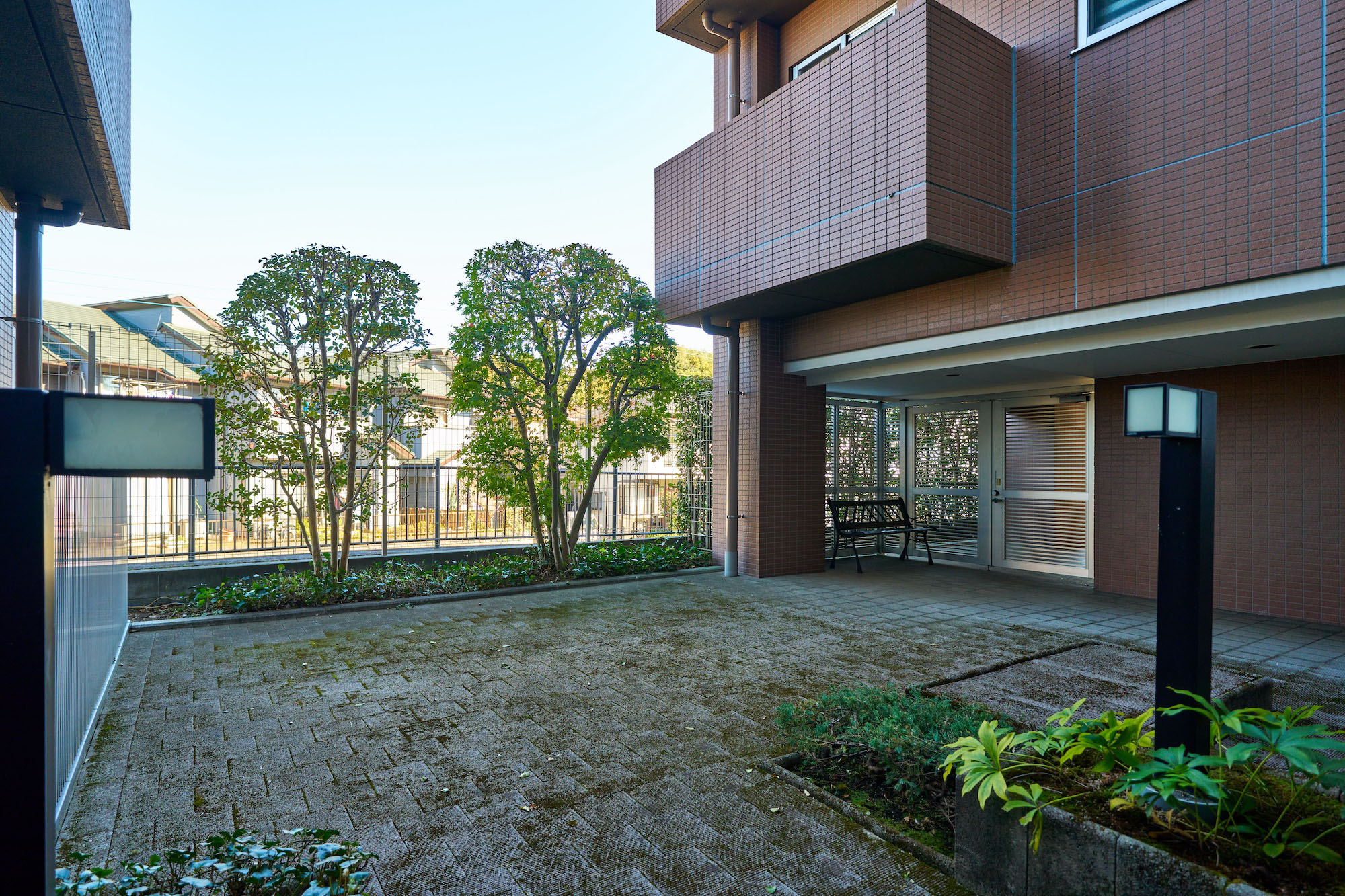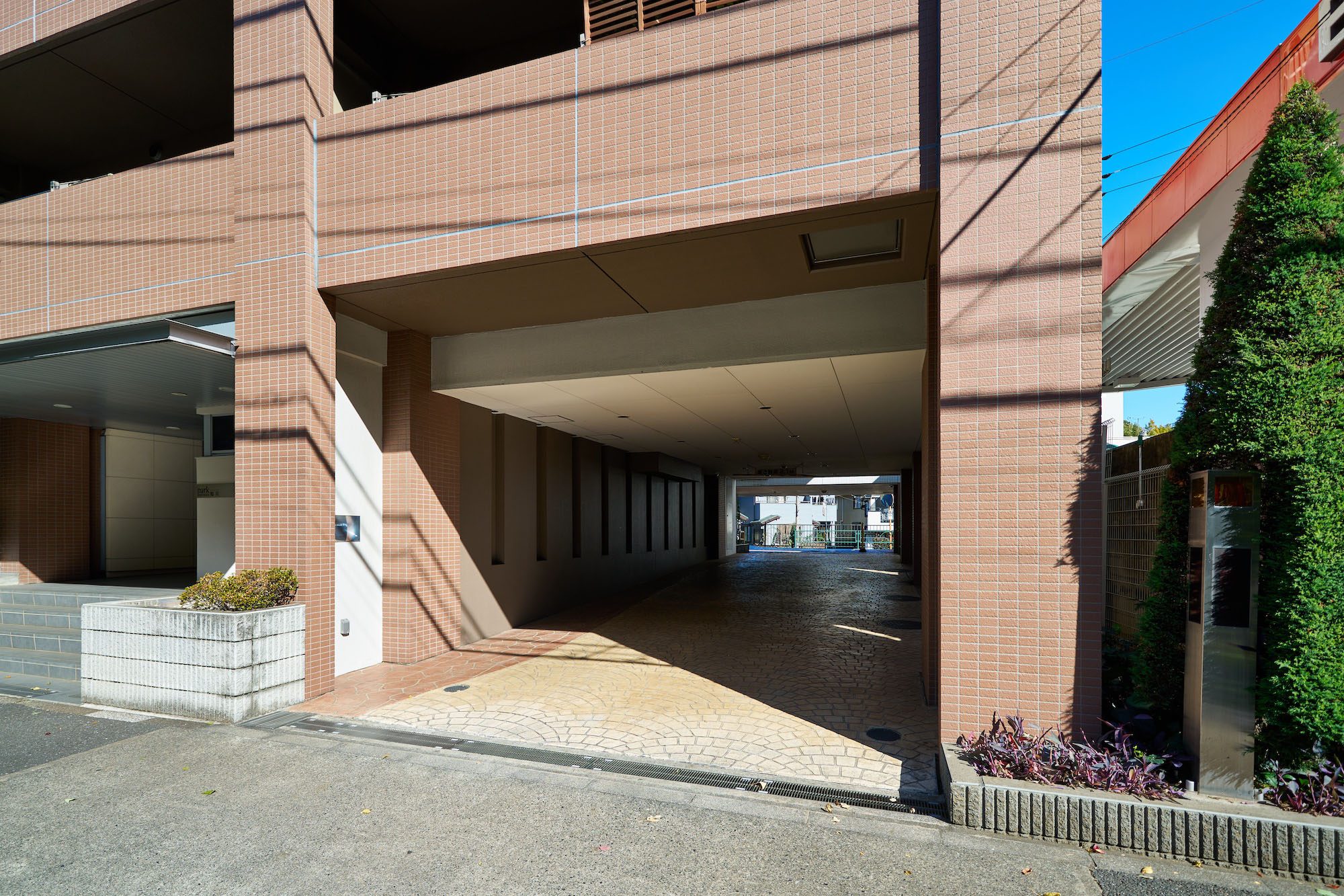段差と奥行きを持たせることでプライバシー性を高めたエントランス。その先に広がるエントランスホールは、木や土の質感を大切にした素材を丁寧に組み合わせてデザイン。アースカラーと木目のコンビネーションで構成されたデザインウォールや、シックな木目調の天井が、上質で落ち着いた雰囲気を醸成しています。さらに共用廊下や中庭には植栽を多く配し、夜には幻想的な照明演出も。モダンな印象の中にも、暖かい雰囲気を漂わせ、住まう方の憩いの場を形成しています。私邸へのアプローチを優しく結ぶ、やすらぎと洗練の空間です。