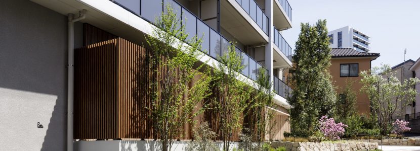 個性を主張することを抑えた優しい印象のファサード。上層部は浦和の住まいとしての品格を意識し、基壇部は木を使って柔らかく温かみのある雰囲気を演出しています。つま壁となる部分には、障子をモチーフとした格子のデザインを採用。インパクトのあるL字のライン照明が全体を引き締めています。控えめながらも確かな個性が光る、外観デザインです。