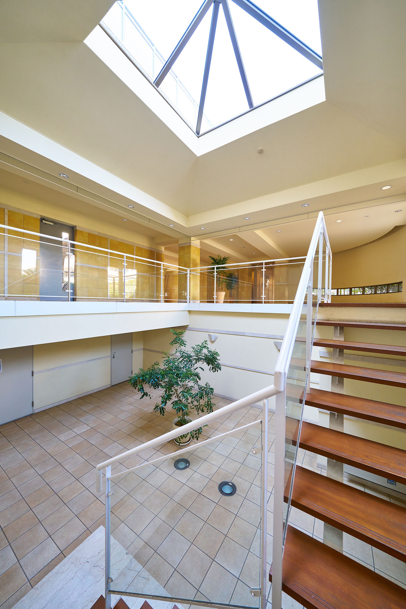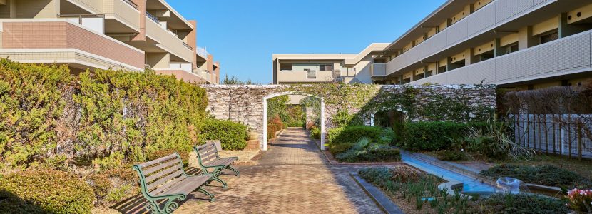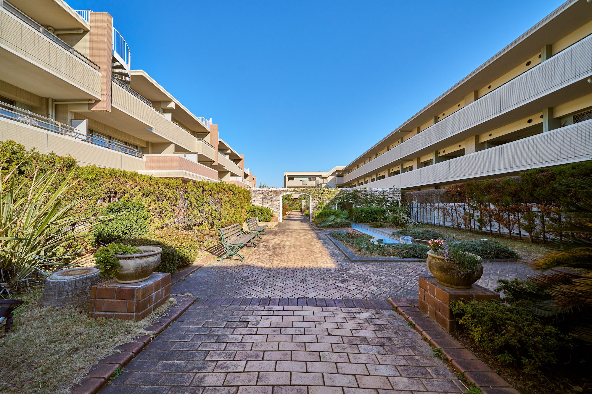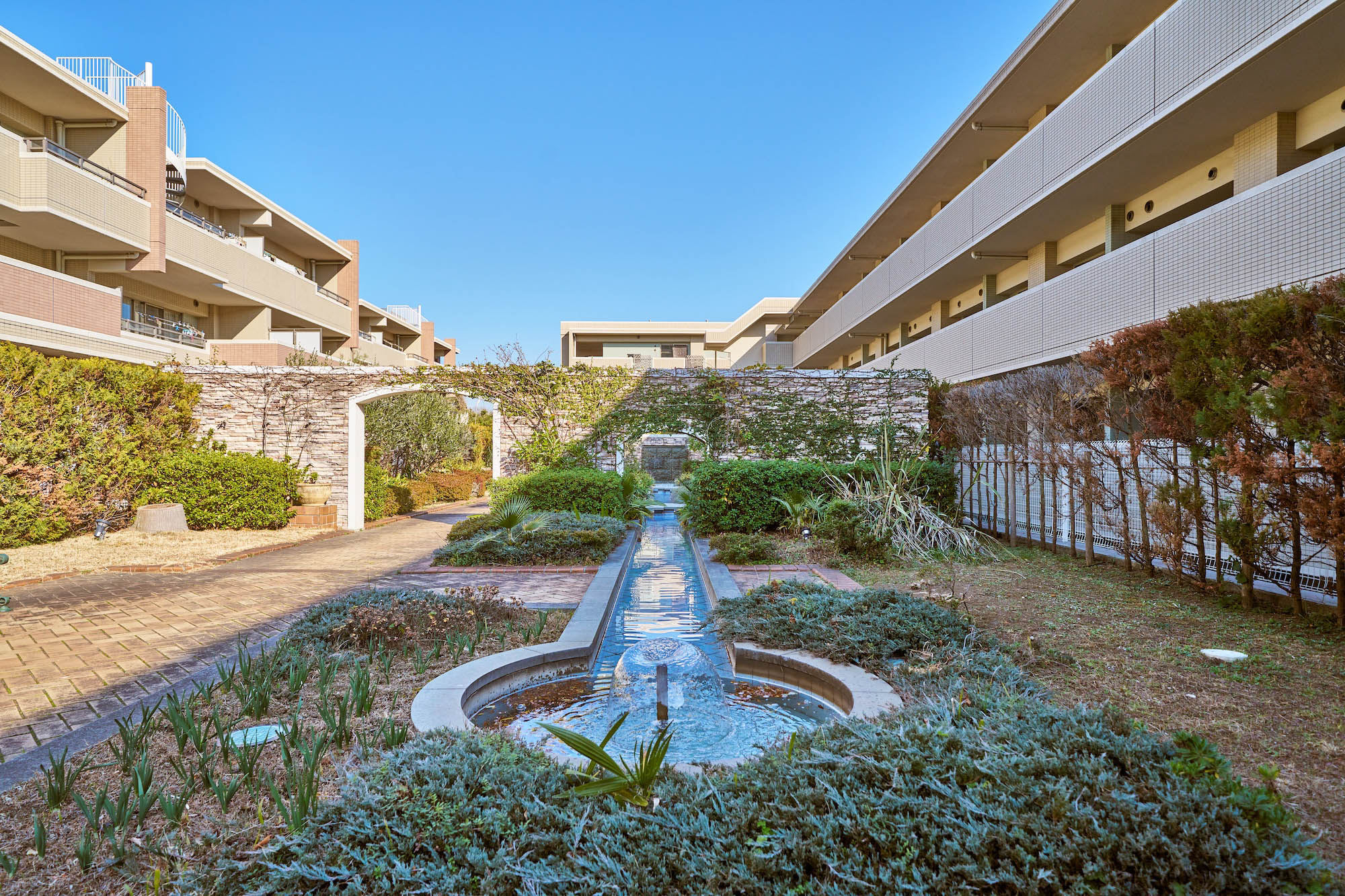 ハナミズキのシンボルツリーや、気品のあるインターロッキングを配し、車寄せが設けられた格調高いエントリー空間。メインエントランスの他に各住棟にも出入り口が設けられており、駐車場などからの便利な動線を確保するとともに、棟ごとの独立性を高めています。エントランスホールに一歩足を踏み入れると、まず目を引くのが、トップライトや壁に開けた窓から注ぐ自然光。それが、白とベージュでまとめたホール内に美しいコントラストを織り成しています。まさに“オープネス“を求めた住まいにふさわしい、すがすがしくてナチュラルな空間です。エントランスホールの真上には「フィールズサロン(集会室)」があり、窓を開け放てば隣接する屋上庭園「スカイパーク」と一体化した心地よい空間が生まれます。サウスレジデンスとガーデンレジデンスの間には、住まう方々の憩いの空間となるインナーガーデンを設置。あふれる緑とたっぷりの陽光、中央には水のせせらぎ(ロングプール)が配され、潤いとやすらぎを与えています。