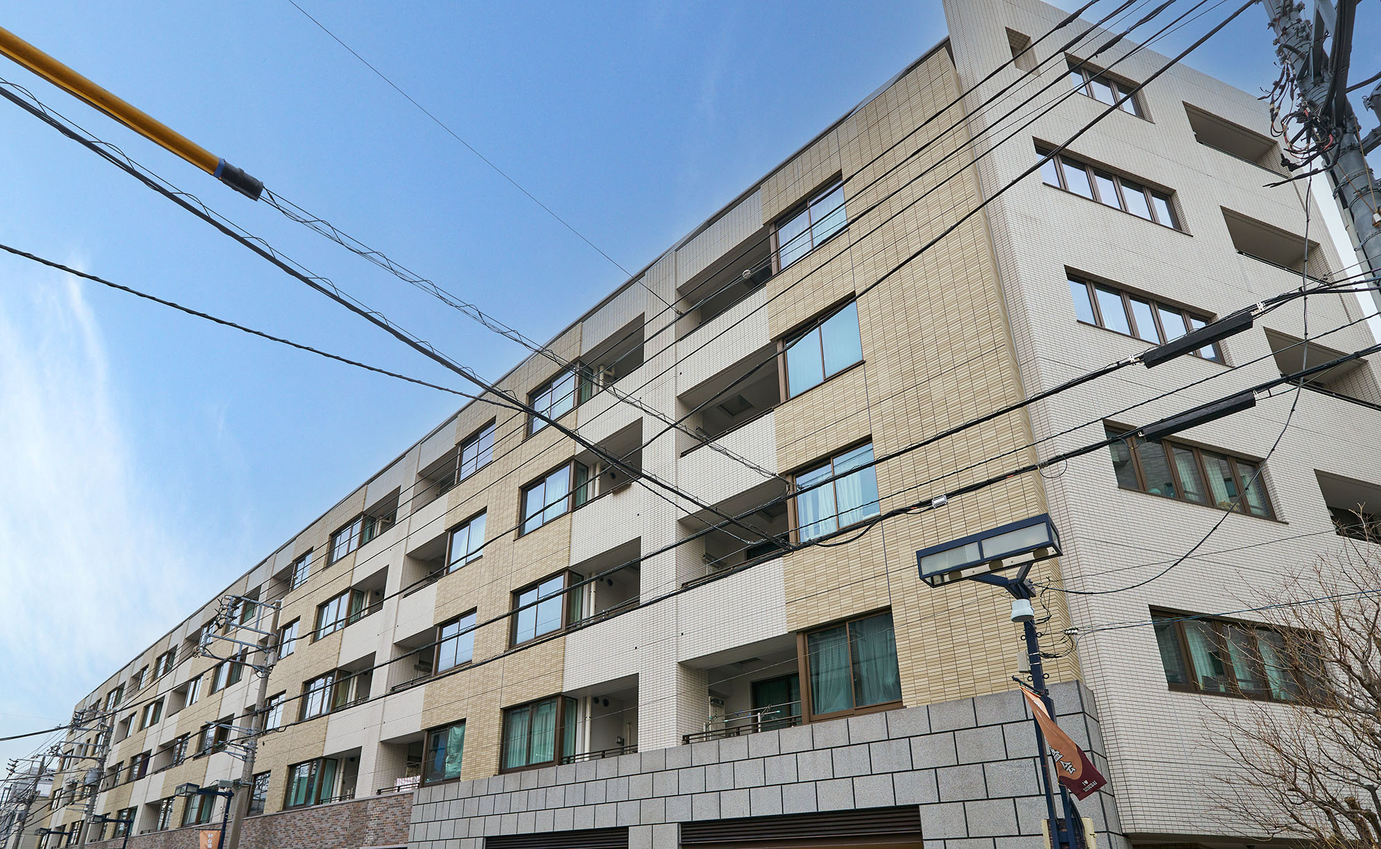 シンボリックでありながら街並みと調和し、住む人が本当に落ち着ける、パリのアパルトマンを思わせるエレガントな外観デザインを追求。優しいアースカラーを基調とし、レンガ調タイルとブリック目地を使った1階部分の外壁は、パリのカフェや花屋をイメージしています。一方、エントランスまわりには天然御影石を配し、重厚感のある佇まいに。程よい陰影を創るモザイクタイルや木目調パネルが、ぬくもりを演出しています。スケール感ある外観が街並と融け合い、美しい景観を創出。それと同時にほっとするような佇まいが、ここに帰る人を包み込むように迎えてくれます。